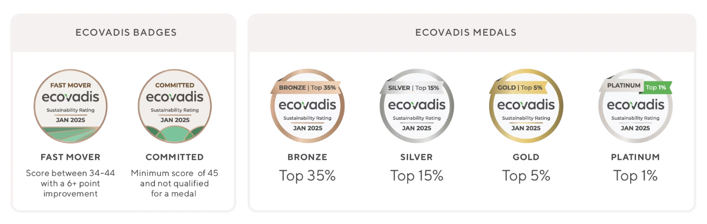 EcoVadis trao huy chương dựa trên điểm số và việc không có các tranh cãi nghiêm trọng: