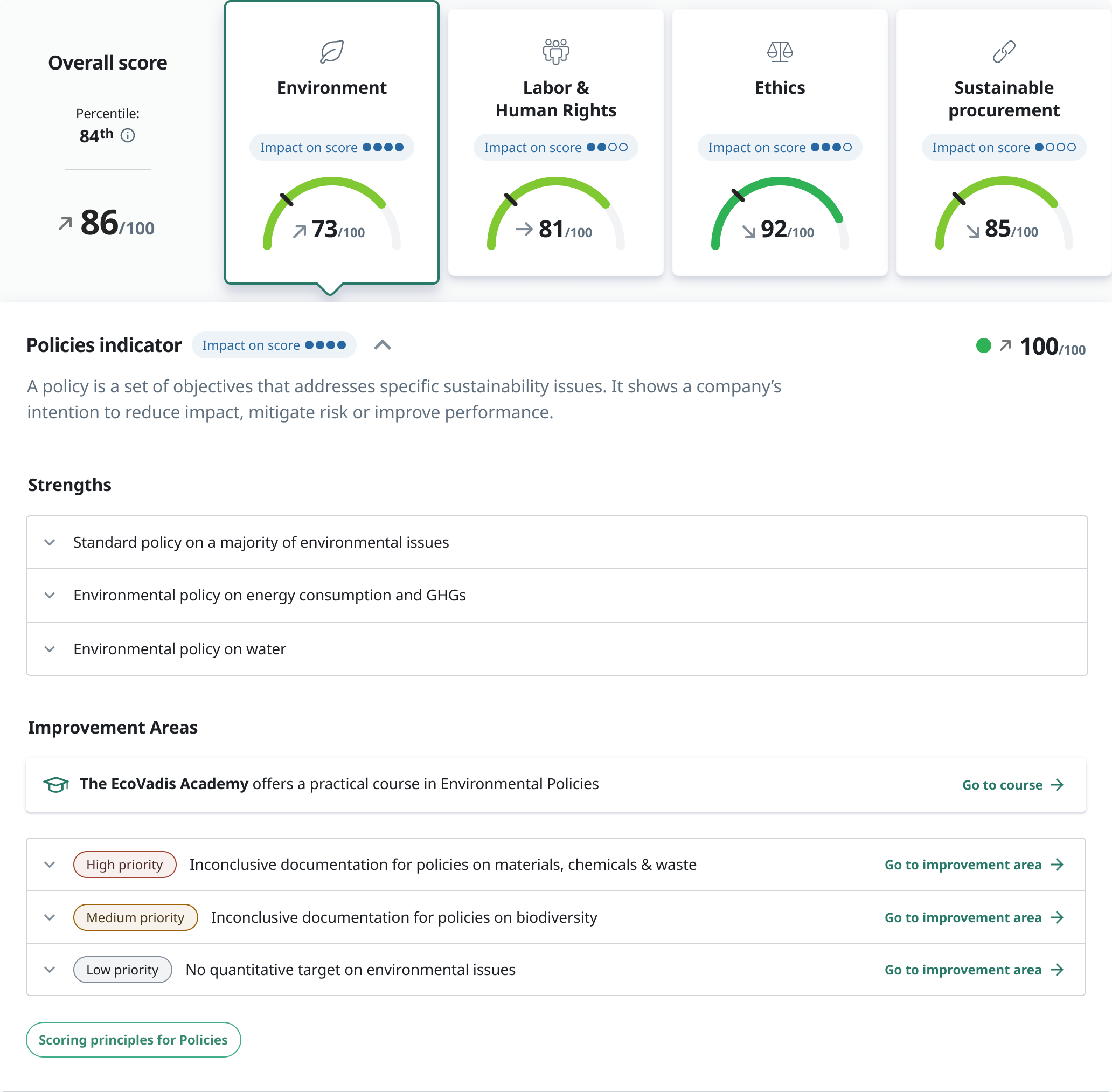 Bảng điểm EcoVadis được thiết kế để cung cấp cho doanh nghiệp một cái nhìn có cấu trúc về hệ thống quản lý bền vững.