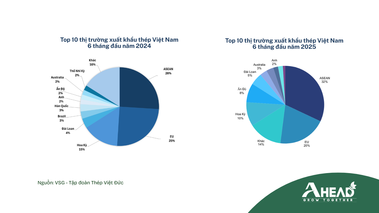 Tuy nhiên, đến 8 tháng đầu năm 2025, lượng thép xuất khẩu sang EU giảm mạnh xuống còn khoảng 1,03 triệu tấn, chịu tác động từ nhiều rào cản thương mại như CBAM và việc siết hạn ngạch nhập khẩu.