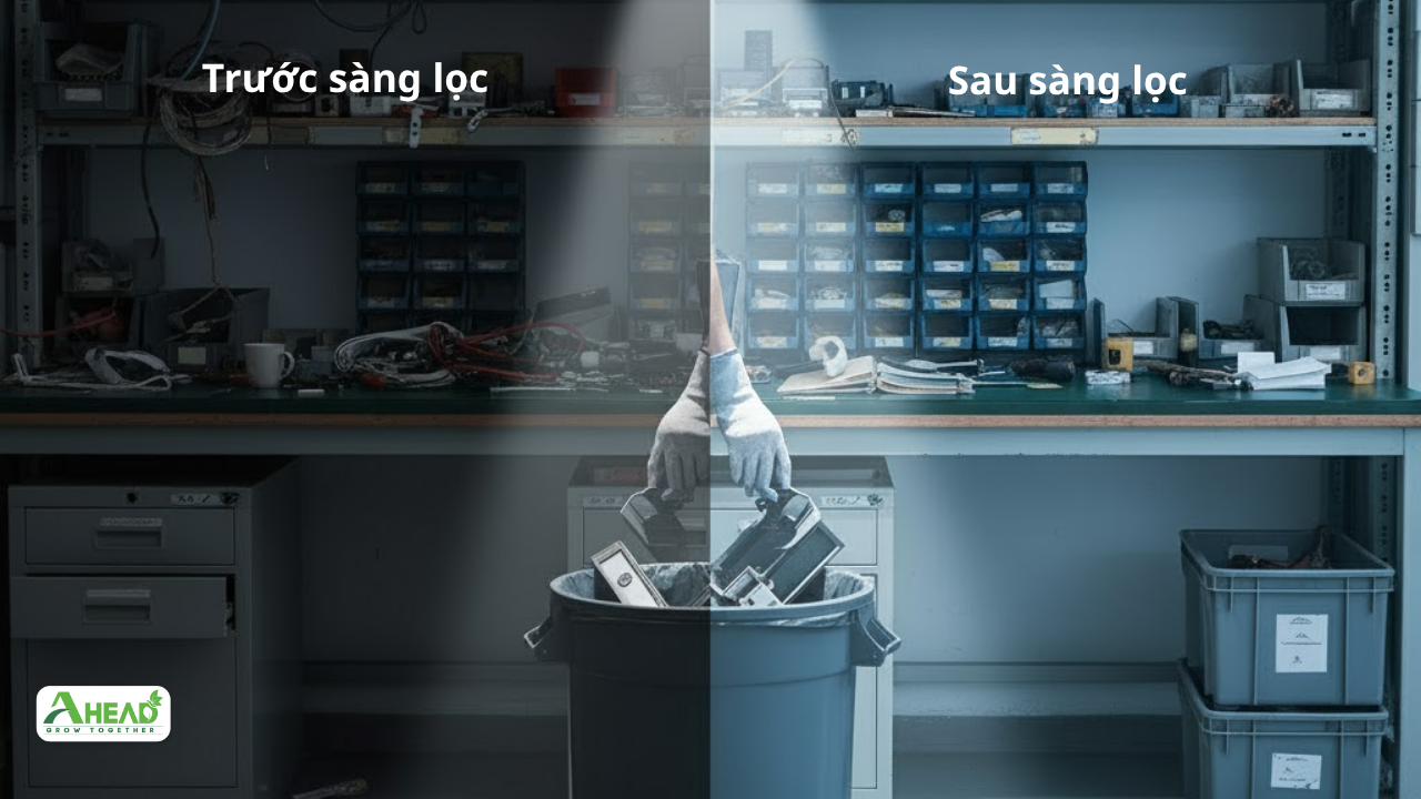 ▶ S1: Seiri (Sàng lọc) sàng lọc những thứ không cần thiết tại nơi làm việc.