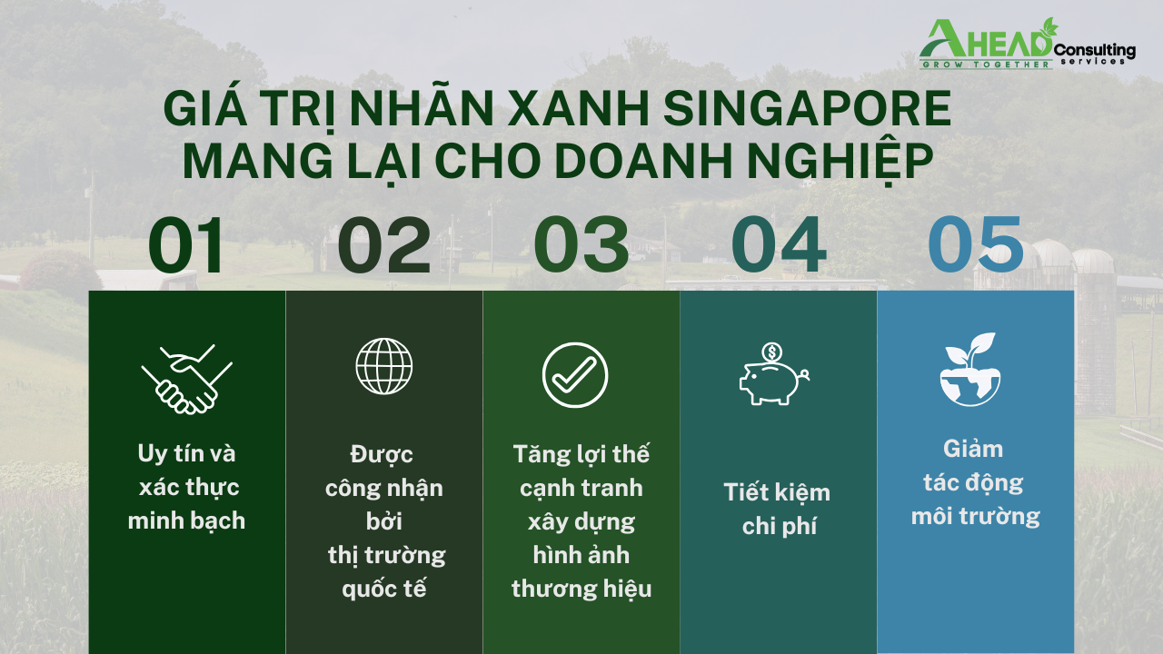 Tăng lợi thế cạnh tranh xây dựng hình ảnh thương hiệu: Chứng nhận góp phần cải thiện uy tín thương hiệu và tạo khác biệt rõ rệt so với đối thủ không có Singapore Green Labelling Scheme . Điều này không chỉ tạo lợi thế cho sản phẩm tại địa phương mà cũng là một nấc thang để doanh nghiệp hướng tới các vị trí cao hơn trên thị trường quốc tế.