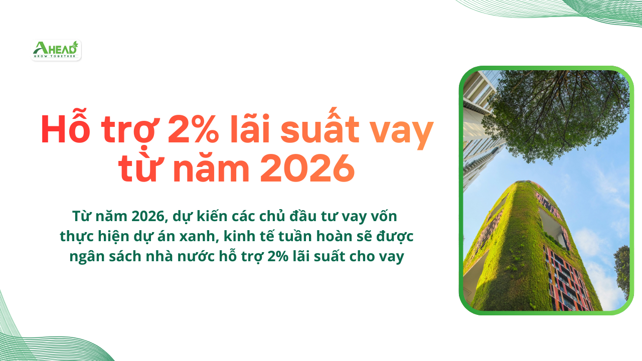 Trong lộ trình chuyển đổi sang mô hình tăng trưởng xanh và phát triển bền vững, Việt Nam đang từng bước hoàn thiện các công cụ tài chính mang tính dẫn dắt thị trường. Một trong những chính sách quan trọng sắp được triển khai là hỗ trợ lãi suất 2%/năm từ ngân sách nhà nước cho các doanh nghiệp, hộ kinh doanh và cá nhân kinh doanh vay vốn thực hiện dự án xanh, kinh tế tuần hoàn và áp dụng khung ESG.