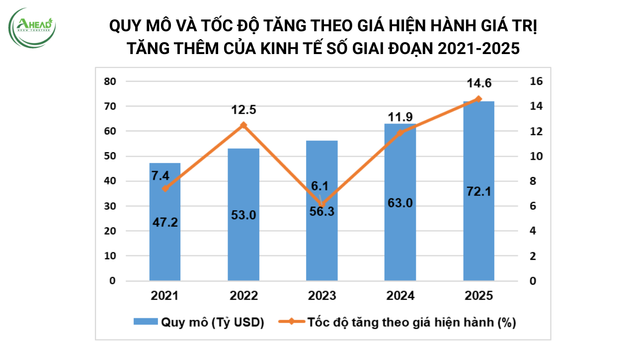 Sự tăng trưởng của kinh tế số tại Việt Nam không phải là tự phát mà có nền tảng chính sách mạnh mẽ. Cục Thống kê cho biết, giá trị tăng thêm của kinh tế số trong GDP giai đoạn 2021–2025 đã tăng liên tục từ 12,87 % lên 14,02 %, cho thấy chính sách quốc gia đang tạo đòn bẩy cho phát triển số.