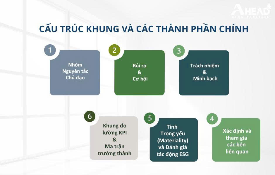A: Có. Trong khung có phần KPI đo lường cho từng trụ cột (E, S, G) và ma trận trưởng thành. Tuy nhiên, doanh nghiệp cần tùy chỉnh KPI phù hợp với hoạt động thực tế của mình.